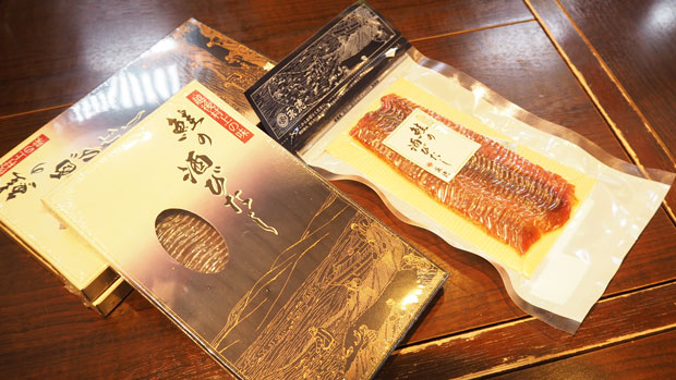 村上伝統の塩引鮭をはじめ、鮭の酒びたしなど、村上の鮭文化を代表する加工品を購入することができる。