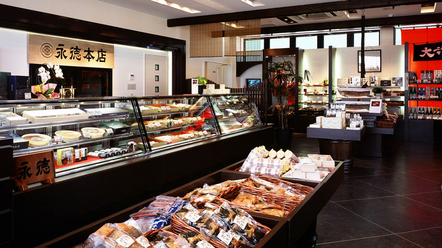村上名産の鮭製品や水産加工品を販売する、永徳の直営ショップ。