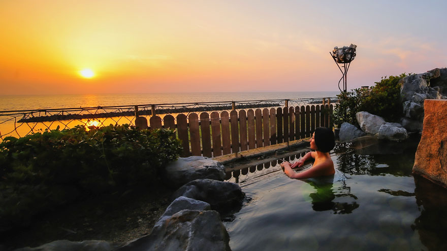 開湯100年以上の温泉地。日本海に沈む夕日を望む絶景の露天風呂が有名。(車で約10分)